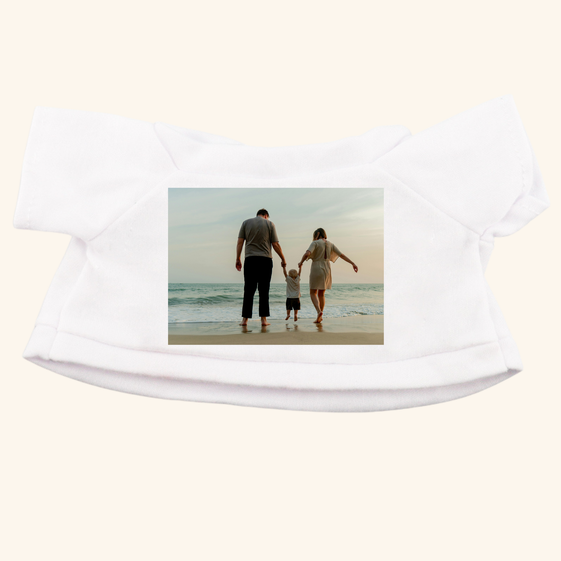 Un regalo tierno y único para cualquier ocasión. Este adorable peluche viene con una camiseta blanca personalizable, perfecta para añadir un nombre, mensaje y/o fecha especial que lo convierta en un recuerdo inolvidable.